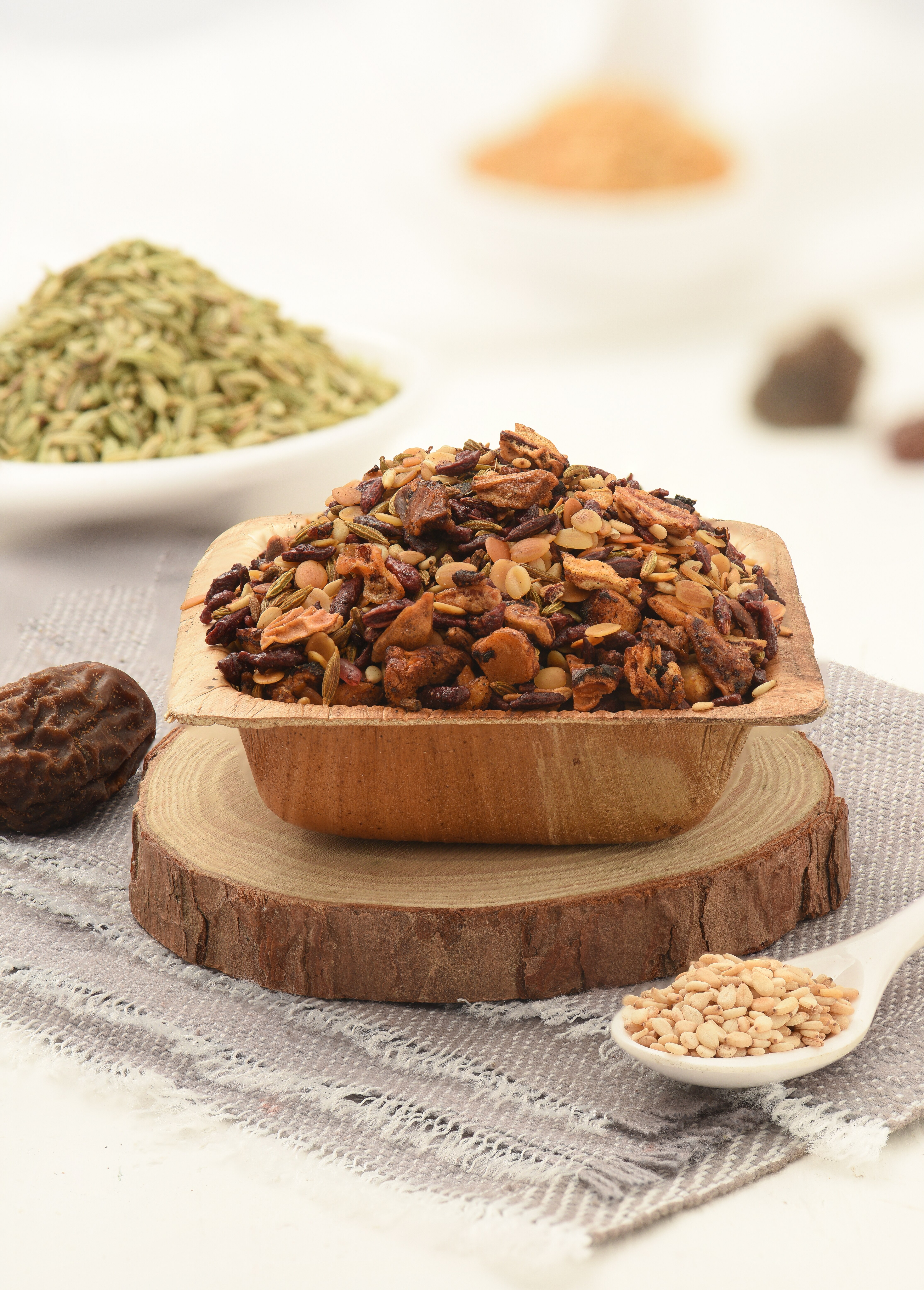 The Royal Roasted Mukhwas is exactly what it sounds like – an extravaganza of mouthful of flavours and enchanting aroma. A whole lot of seeds with freshening properties and health benefits are brought together and roasted to create this beautiful blend by FoodSpot. It has a protein content of 4 grams, fat content of 6 grams and 11 grams of carbohydrate. Total energy is 100 kcal per unit. Benefits: Brings a refreshing change of flavour in the mouth It is good for the condition of your heart It improves gastric health and deals with acidity It is great for keeping the mouth busy during hunger pangs