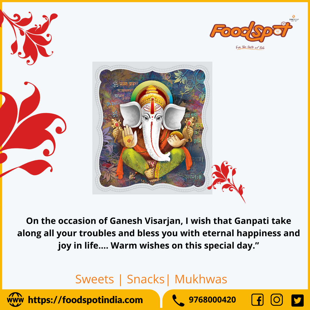 On the occasion of Ganesh Visarjan, I wish that Ganpati take along all your troubles and bless you with eternal happiness and joy in life…. Warm wishes on this special day.”