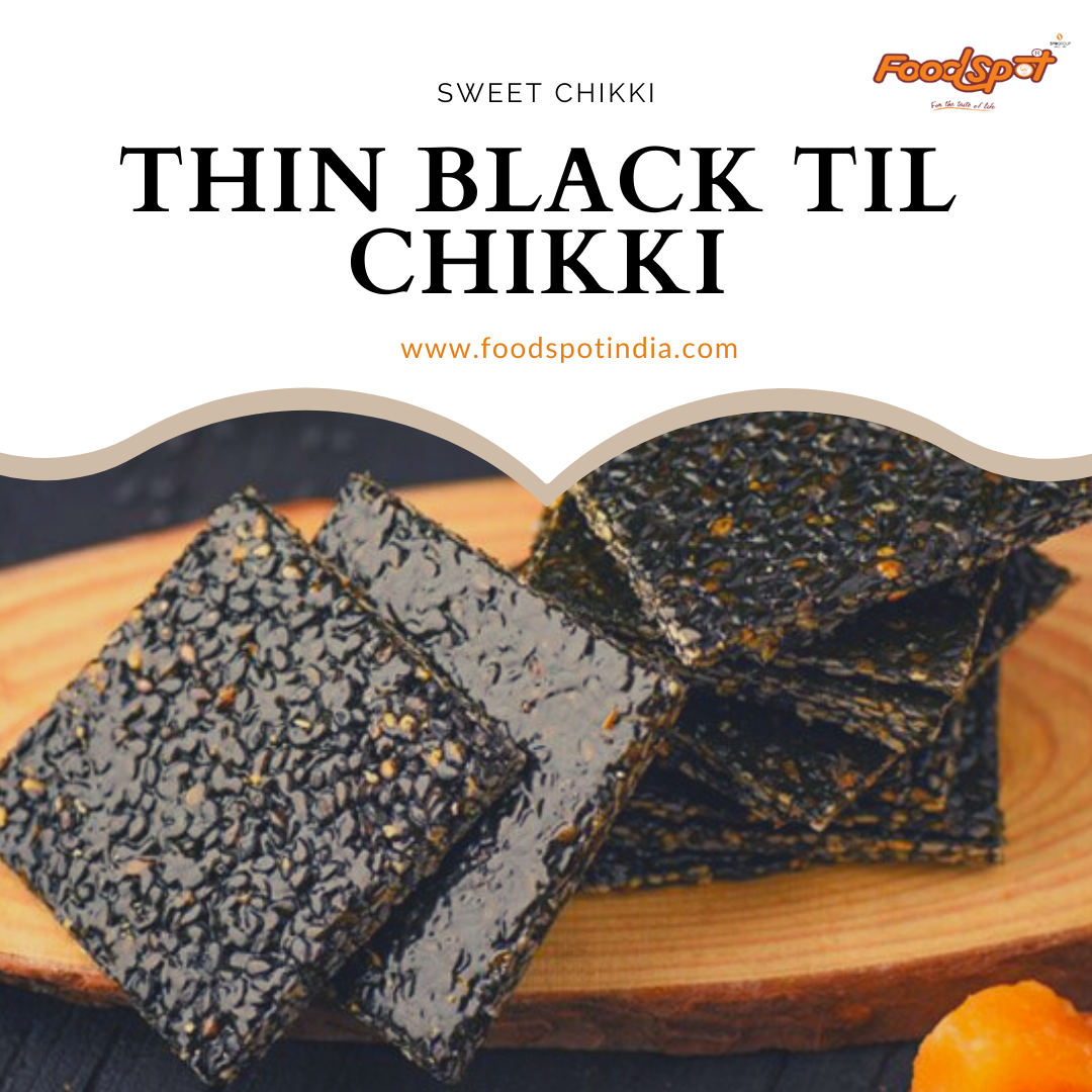 Unhulled black sesame seeds coated in a shiny glaze of jaggery and ghee make the Thin Black Til Chikki by FoodSpot hard to resist.